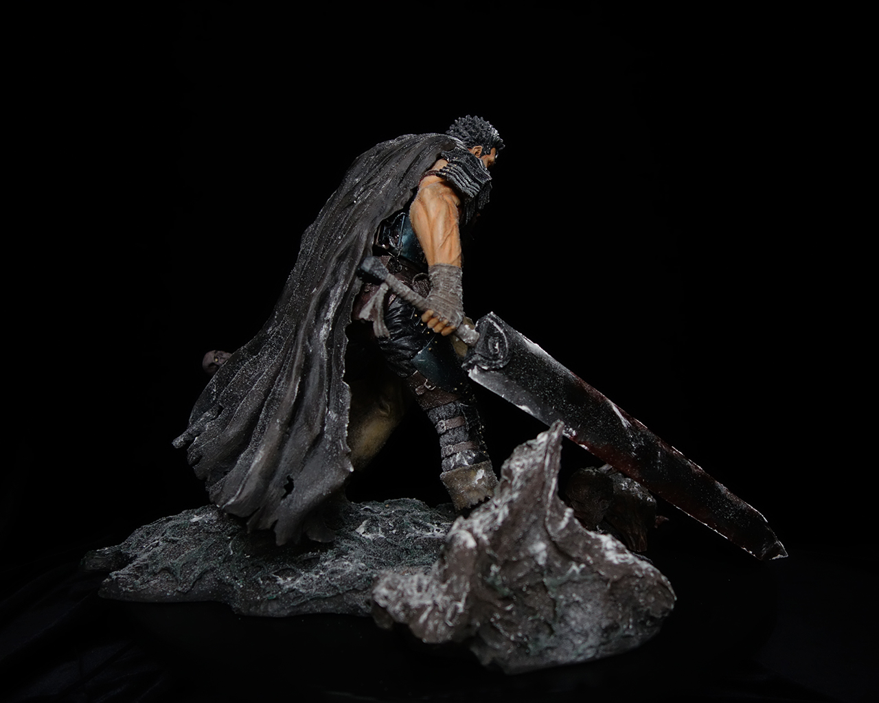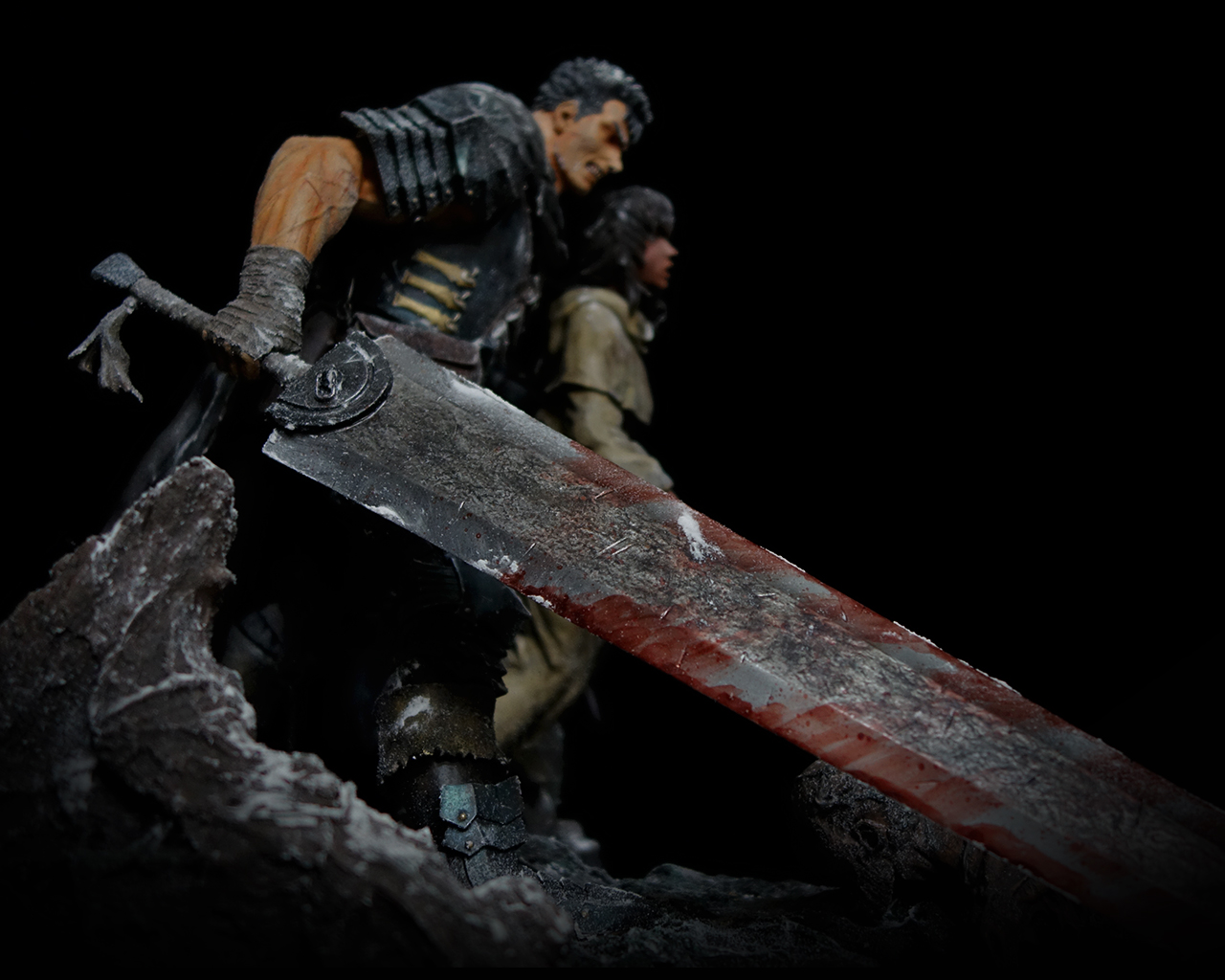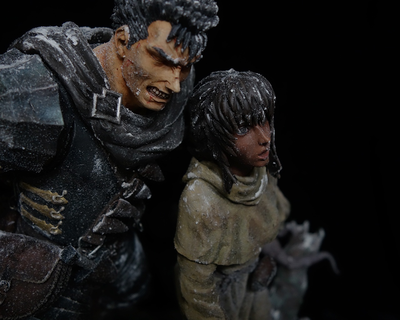 This work includes two statues: Guts and Casca, plus a diorama base.