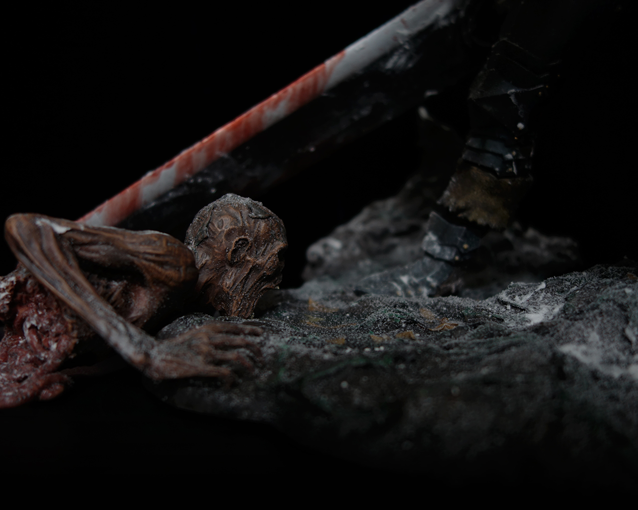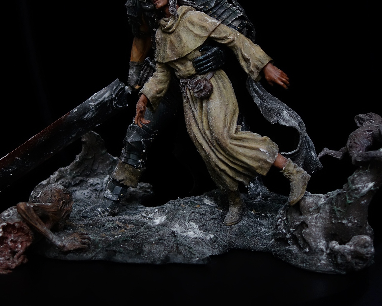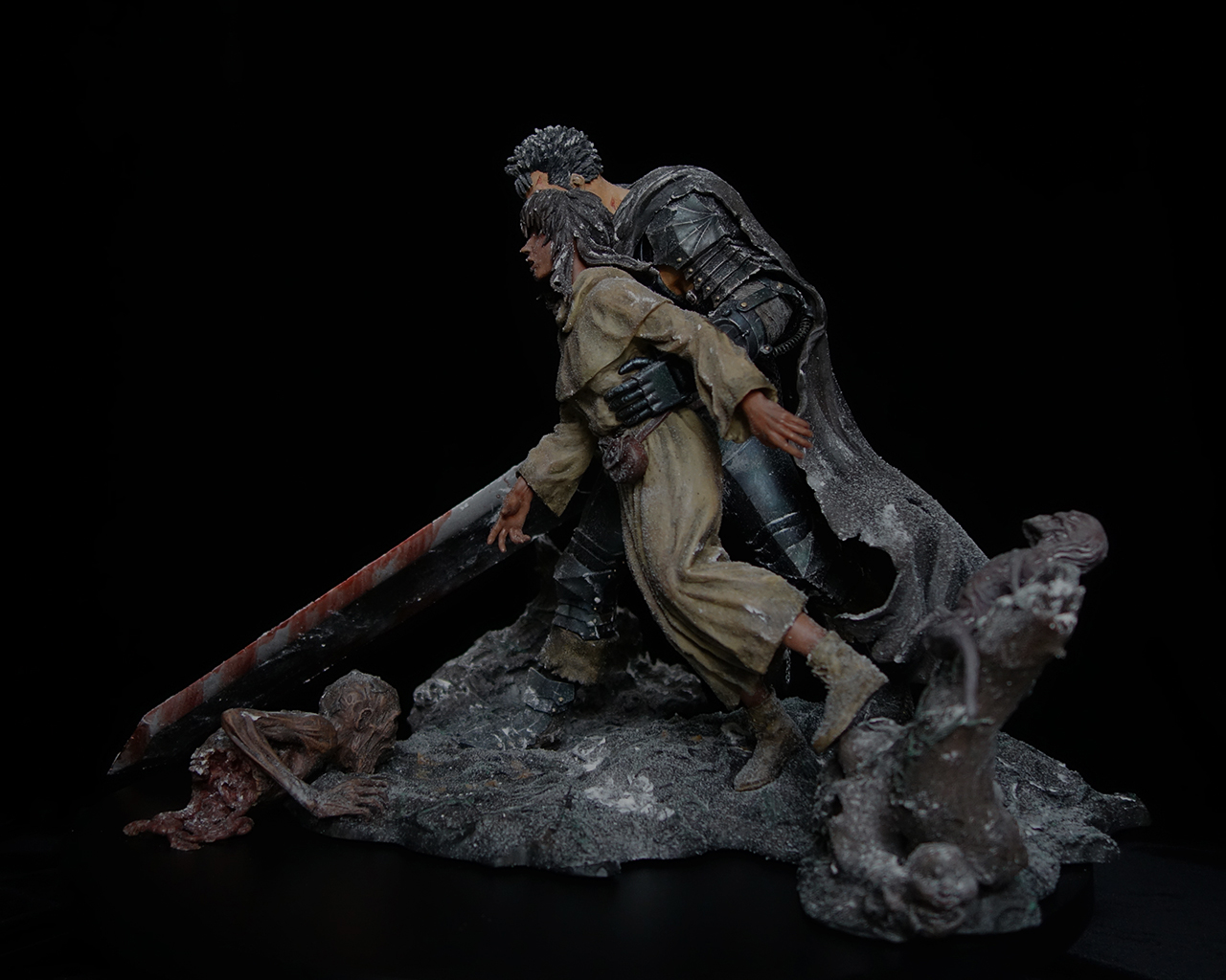 This work depicts the harsh journey of Guts and Casca in sculptural form.