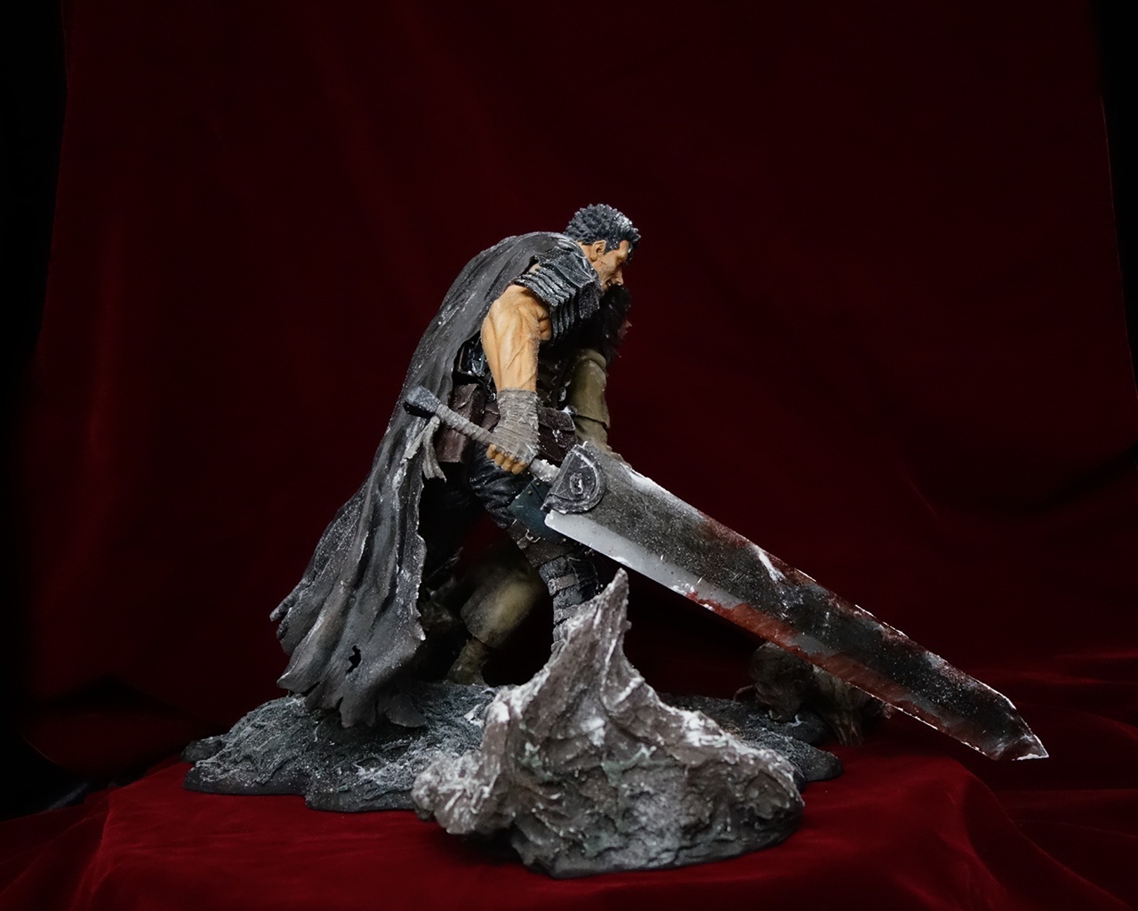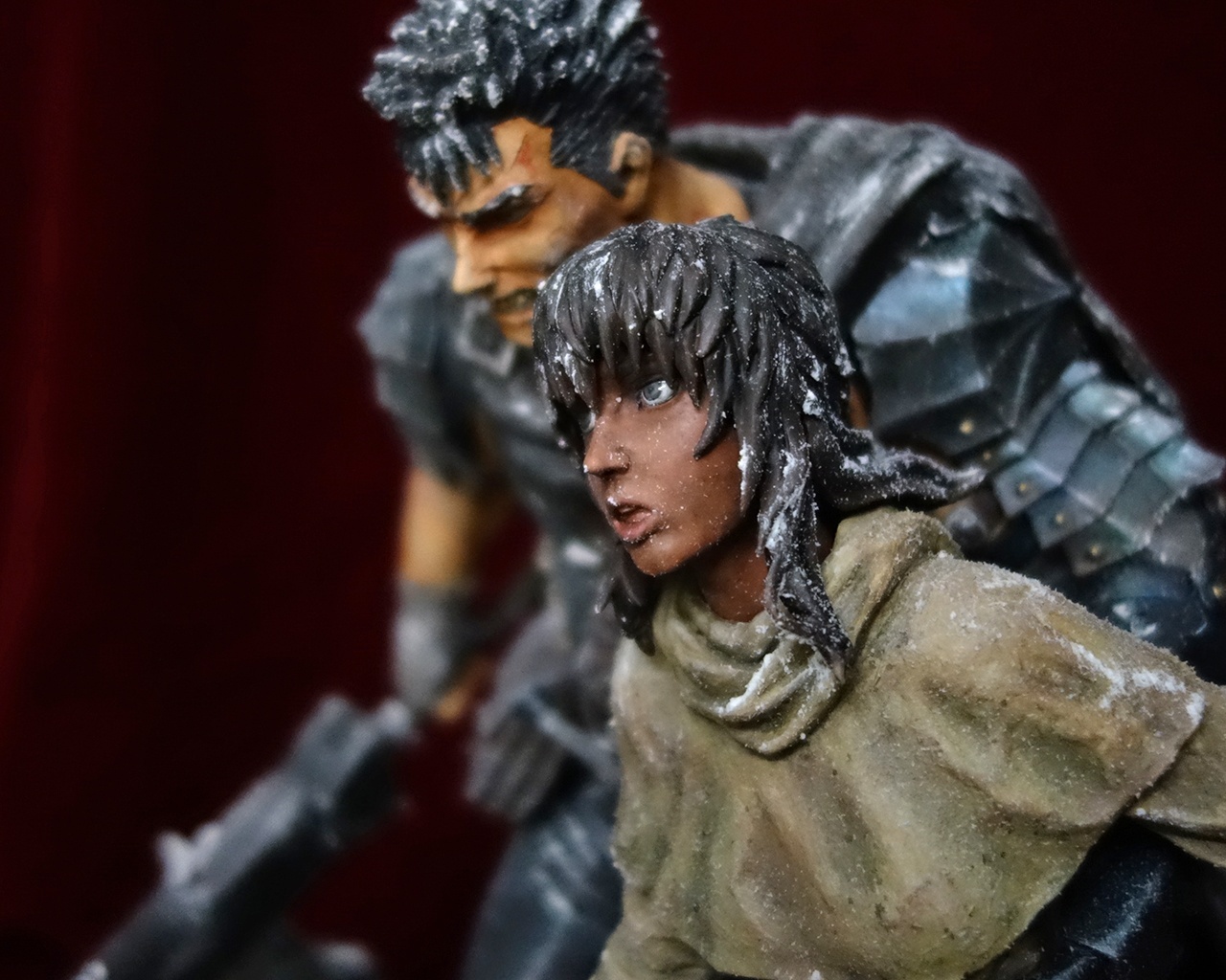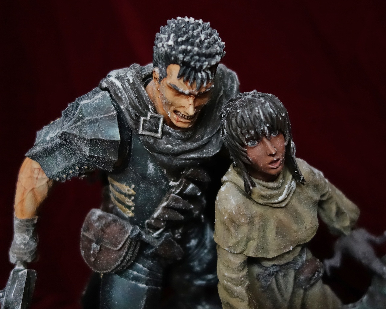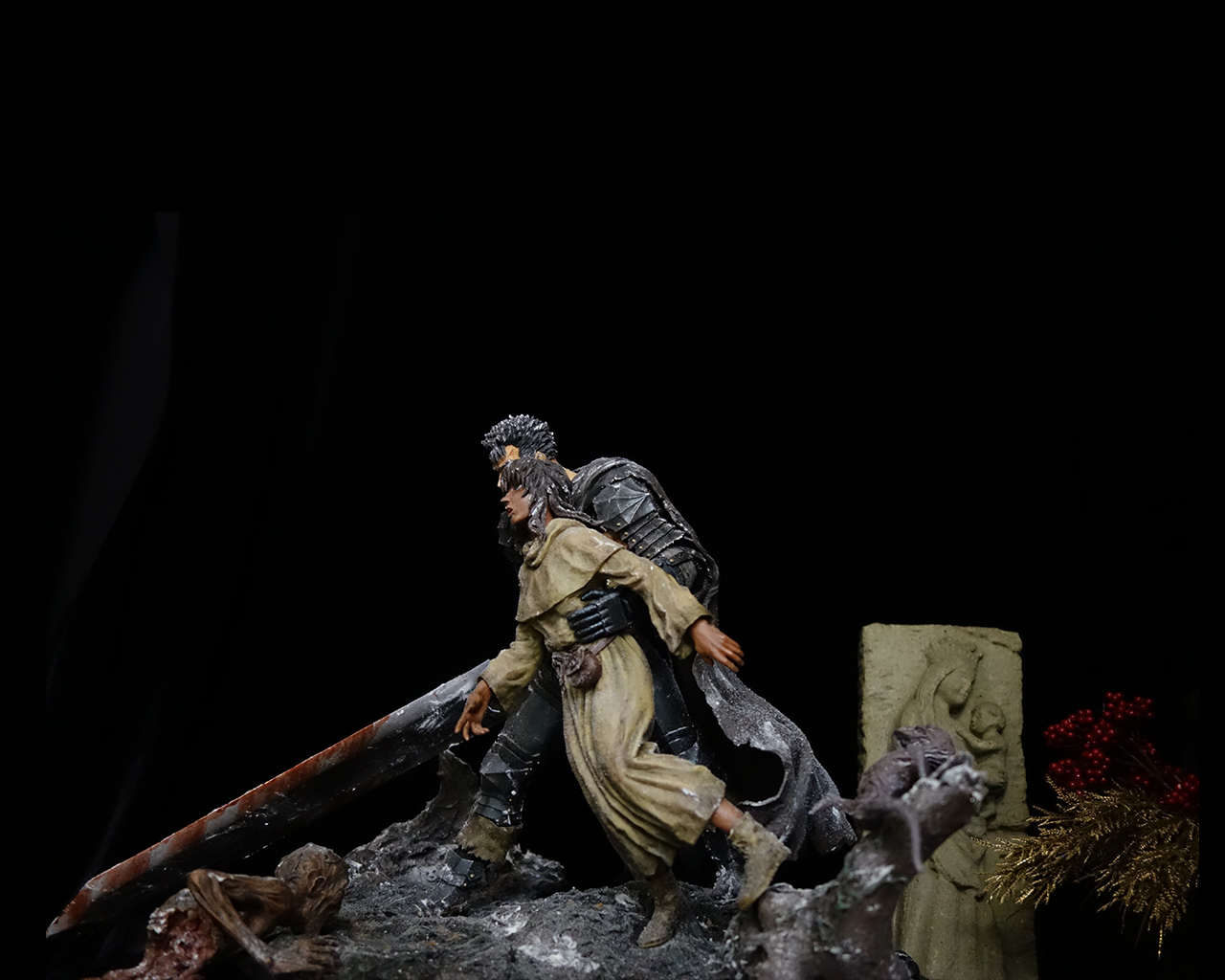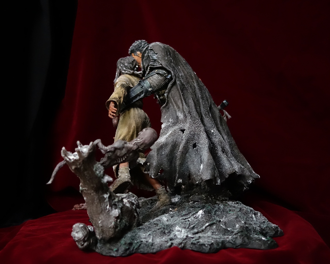 This piece includes two statues: Guts and Casca, plus a diorama base.