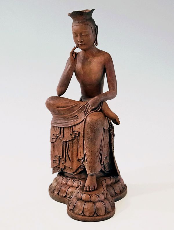 The "Seated Maitreya", by a beautiful seating gesture with fingers add on cheek softly,